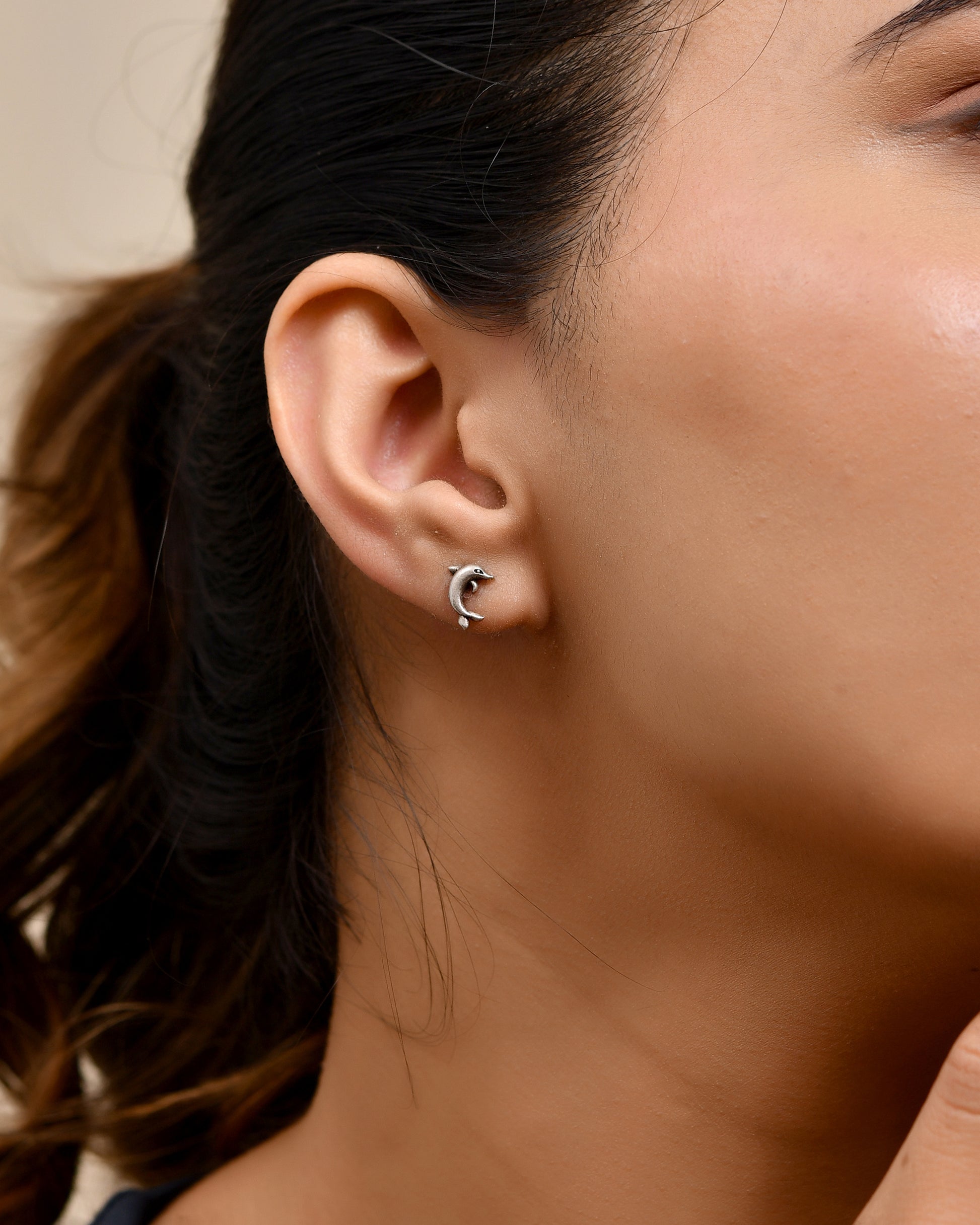 Crafted from 92.5% sterling silver, these Dolphin Studs combine elegance with subtle marine-inspired design. Their polished finish offers a timeless appeal, making them a versatile accessory for everyday wear or special occasions.