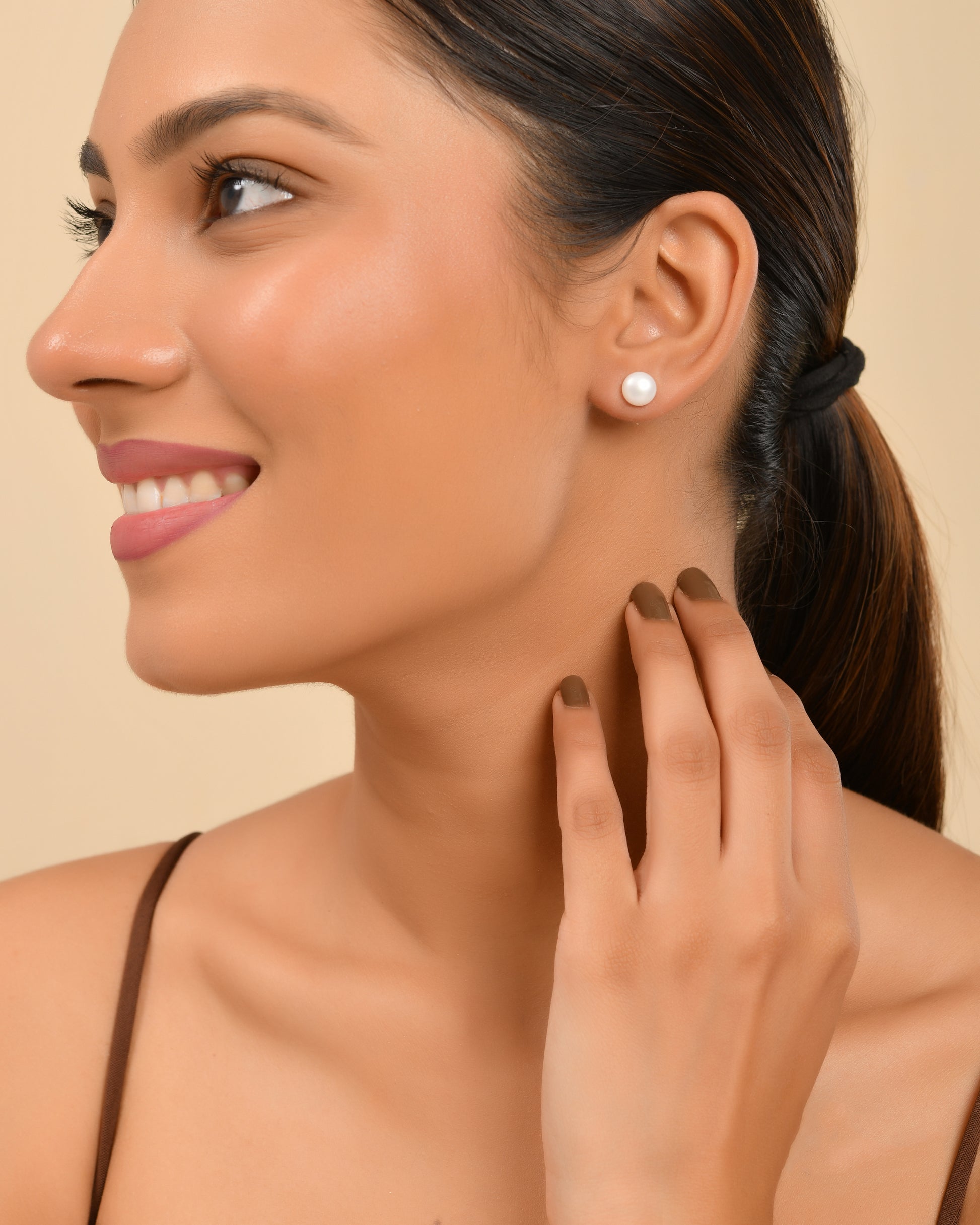 These Pearl studs, crafted in 92.5 sterling silver, combine timeless elegance with durable craftsmanship. The high-quality silver setting enhances the natural luster of each pearl, ensuring a sophisticated look suitable for both everyday wear and special occasions.